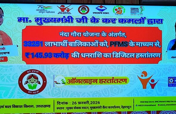 मुख्यमंत्री पुष्कर सिंह धामी ने गुरुवार (26 फरवरी 2026) को नंदा गौरा योजना के तहत वित्तीय वर्ष...