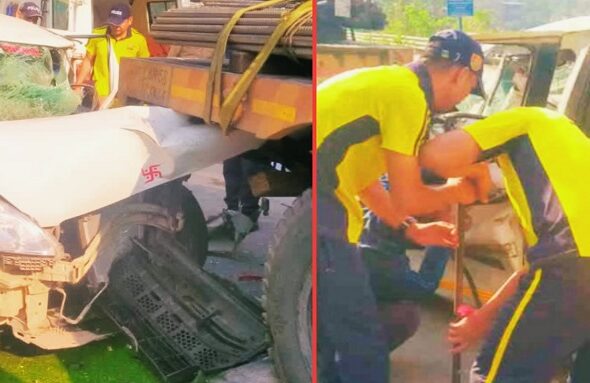 देहरादून में ट्रक और कार की भिड़ंत, स्टेयरिंग के बीच फंसे युवक को पुलिस-SDRF की टीम ने किया रेस्क्यू