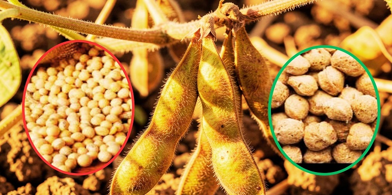 सोयाबीन में प्रोटीन 46, कार्बोहाइडेंट 12,और वसा 22 फीसदी मात्रा में होती है। गौरतलब है, कि सोयाबीन एक GMO (जेनेटिक मोडिफाई ऑरगैनिक क्रॉप) है। वैज्ञानिको द्वारा सोयाबीन में जेनेटिक बदलाव के बाद इसके पोषक तत्वों में भारी बढ़ोतरी हो गयी।