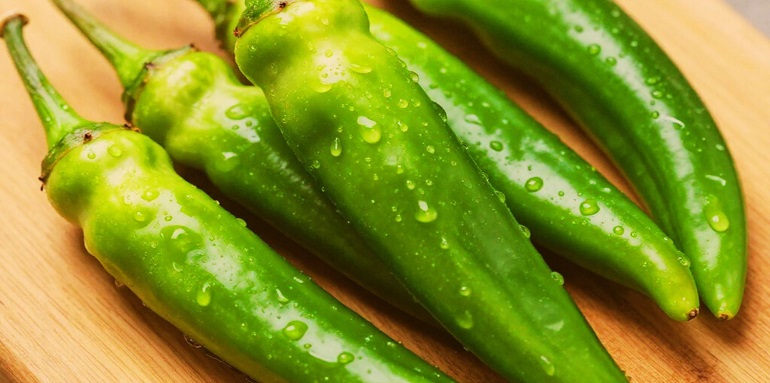 हरी मिर्च में विटामिन-सी, विटामिन-ए, आयरन, पोटैशियम और मैग्नीशियम जैसे जरुरी पोषक तत्व पाए जाते हैं। भारतीय भोजन की पहचान बन चुकी हरी मिर्च को हिन्दुस्तान में पुर्तगाली 13वीं और 14वीं शताब्दी के मध्य लाए थे। हरी मिर्च का सेवन हमारे शरीर को कई प्रकार के रोगो से लड़ने में सहायता करता है। हरी मिर्च का सेवन भारतीय भोजन में सलाद के रूप में किया जाता है।