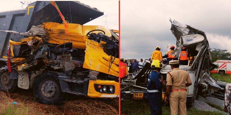 तेलंगाना के रंगारेड्डी जिले में सोमवार सुबह भीषण सड़क दुर्घटना की खबर सामने आई है। इस दर्दनाक सड़क हादसे में 20 लोगों की जान गई है। जबकि कई लोग गंभीर रूप से घायल हुए हैं। वहीं मृतकों की संख्या बढ़ने की आशंका जताई जा रही है। मृतकों में 10 पुरुष, 9 महिलाएं और एक बच्चा शामिल हैं। पीएम मोदी ने दुर्घटना में हुई जन-हानि पर गहरा दुख व्यक्त किया है।