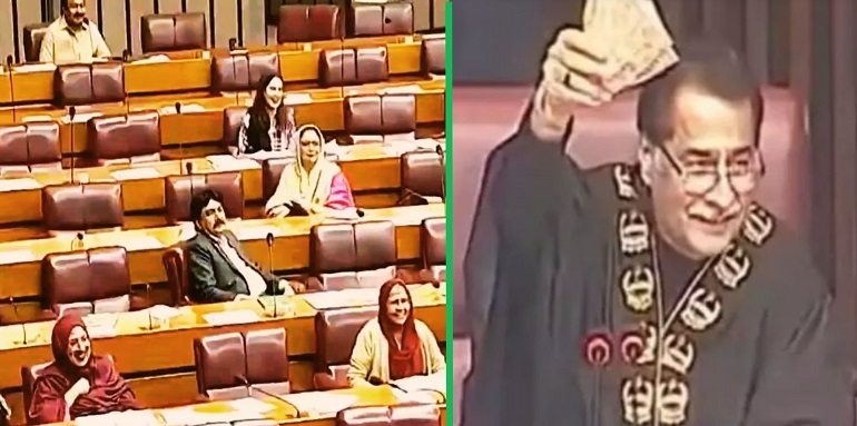 सोशल मीडिया पर वायरल हो रहे वीडियो में नजर आ रहा है, कि पाकिस्तान की नेशनल असेंबली की कार्यवाही के दौरान स्पीकर अयाज सादिक को 5,000 रुपये के दस नोट मिले। उन्होंने इन्हें हवा में लहराते हुए पूछा “ये किसके गिर गए है। स्पीकर के इतना कहते ही संसद में मौजूद लगभग 12 सांसदों ने हाथ खड़े कर दिए। यह देखकर स्पीकर भी हैरान रह गए।