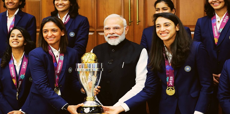 महिला क्रिकेट विश्वकप के पांच दशकों के इतिहास में पहली बार ट्रॉफी जीतने के लिए प्रधानमंत्री मोदी ने हरमनप्रीत कौर की अगुवाई वाली टीम को बधाई दी और लगातार तीन हार तथा सोशल मीडिया पर ट्रोलिंग का सामना करने के बाद टूर्नामेंट में उनकी शानदार वापसी की सराहना की। बता दें, कि यह भारत का पहला महिला विश्व कप खिताब है।