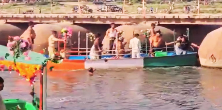 जानकारी के मुताबिक, पंजाब के लुधियाना से करीब 30 श्रद्धालु वृंदावन घूमने आए थे। सभी लोग नाव में सवार होकर यमुना नदी पार कर रहे थे और देवराहा बाबा मठ की ओर जा रहे थे। इसी दौरान नाव पांटून ब्रिज से टकरा गई और संतुलन बिगड़ने से पलट गई। नाव पलटते ही मौके पर अफरा-तफरी मच गई और लोग अपनी जान बचाने के लिए इधर-उधर तैरने लगे।
