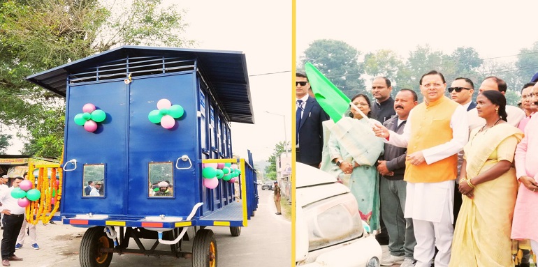 सीएम धामी ने मोबाइल टॉयलेट वैन को किया रवाना, (फोटो साभार : X@DIPR_UK)